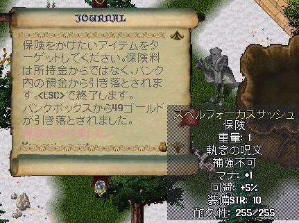 さて、しゅたさんは、クリスマスに怯えながら、彷徨うように家路をたどり、冷たい部屋に転がり込む。脱ぎ捨てた背広をおしのけてのUOですけれども、今日は、昨日、一山幾らでオフディアンさん達から強奪したスペルフォーカスサッシュを検証してみましたよ。