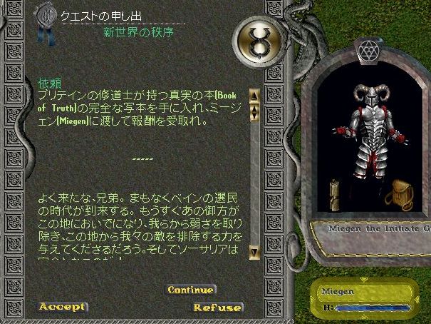 クエストは、『新世界の秩序』ってタイトルですね。