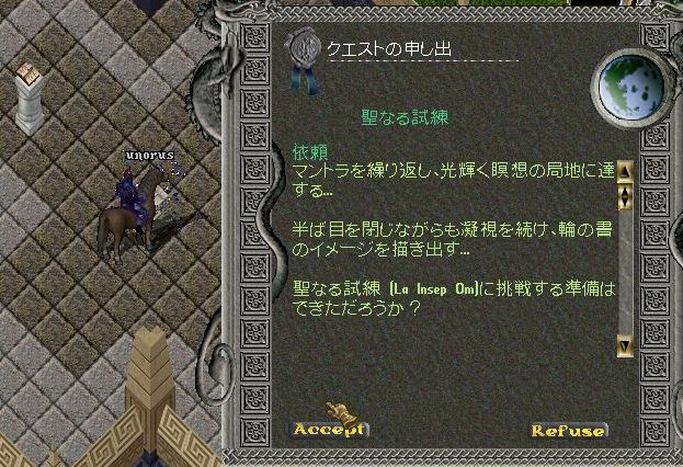 すると、このように、クエストが立ち上がりますので、Acceptをクリックします。