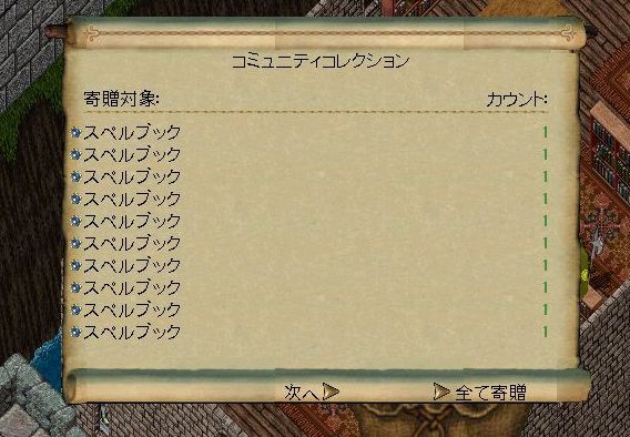さて、このくらい溜まりましたれば、おもむろにブリテインの図書館に篭り、スペルブック作りに精を出すとです。(はぁはぁ)