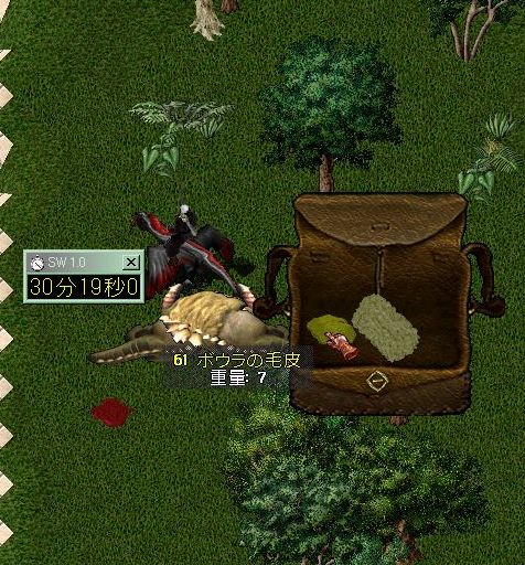 今回は、新しい装備を作ろうと思い立ち、30分間、高原ボウラを狩りまくって、その材料となる『ボウラの毛皮』集めをしようと思います。