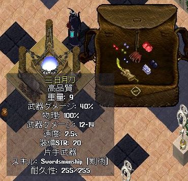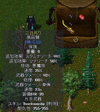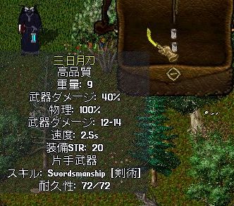 武器ダメージ+α(しゅたさんの鍛冶屋さんは、武器学【Arms Lore】が100なため、武器ダメージは、+40%)がもれなく付いてきますので、付加できるプロパティは、残り4つとなります。