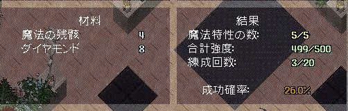 あと、後半の練成は、むしろ失敗が前提ですので、通常宝石と、魔法素材(おそらく、エキスか残骸)は、多めに持っていきましょう。