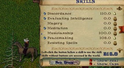 このバードさん、GGSを最大限利用するために、魔法スキルさえも、ソウルストーンフラグメントに移し、スキル合計を350以下に抑えてあります。